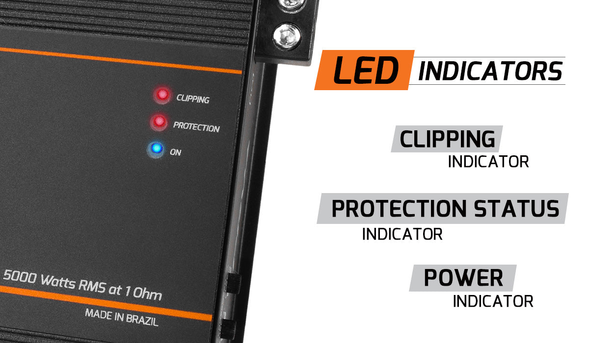 The LED indicator is a simple built-in tool that allows you to easily monitor the status of your amplifier while it is in use.