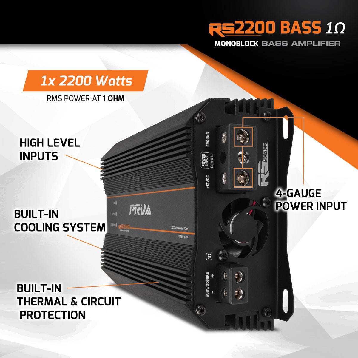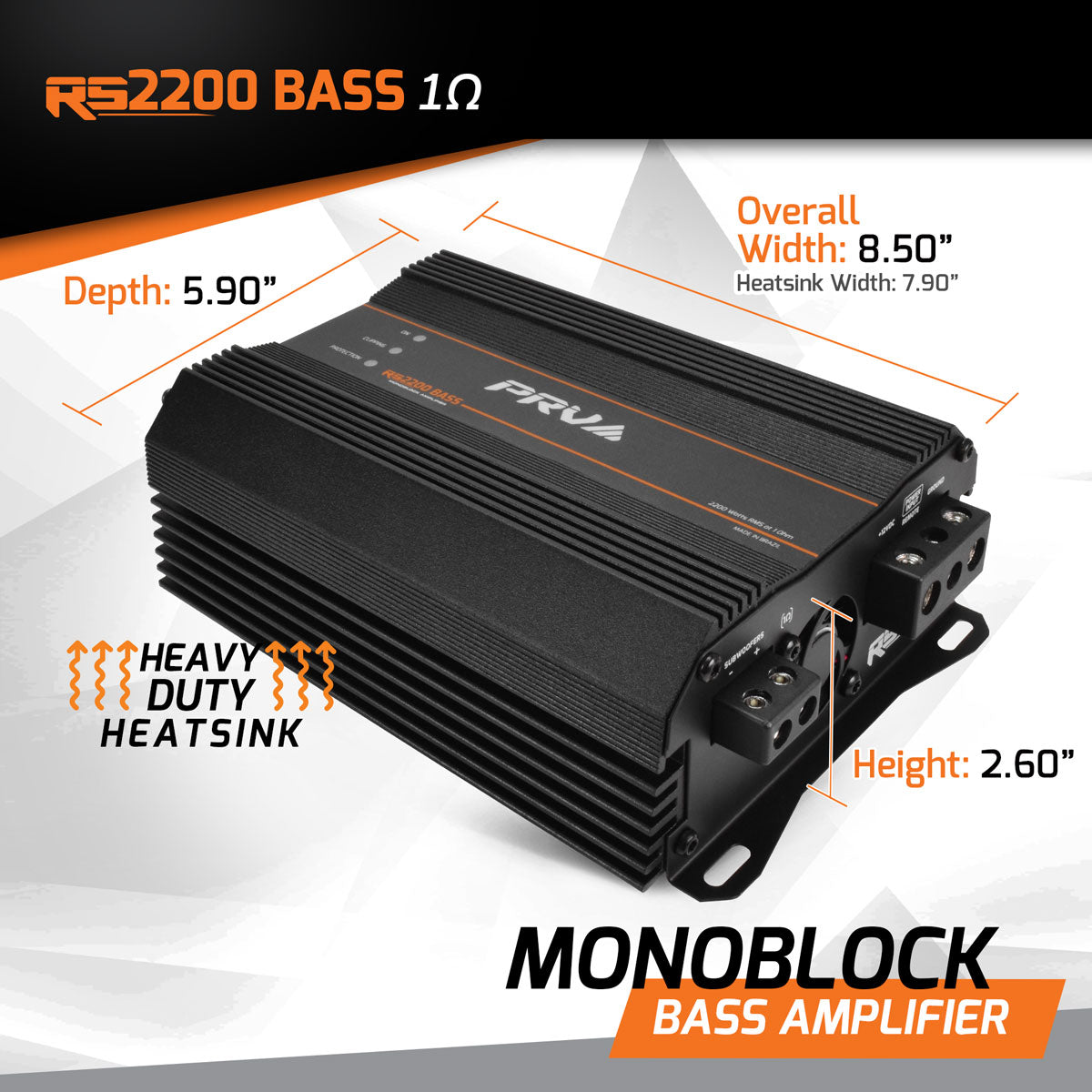 PRV Audio RS2200 BASS 1 Ohm Monoblock 1 Channel Subwoofer Amplifier 2200 Watts RMS at 1 Ohm