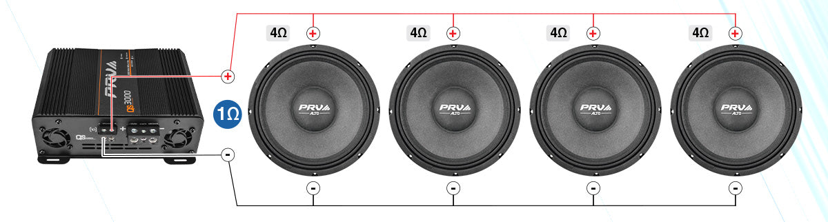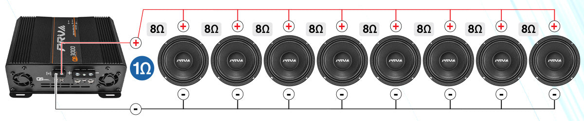 Its high power output channel allow you to install 8x 8 Ohm Speakers, drivers or tweeters in parallel at 1 Ohm, giving up to 375 watts per component.