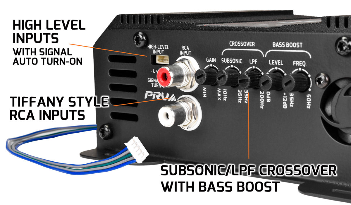 - Manufactured with the highest quality components, such as Tiffany RCA inputs that are extreme vibration resistant, it assures a flawless audio connection and heavy duty high current flow 4 gauge power inputs and 10 gauge speaker outputs.