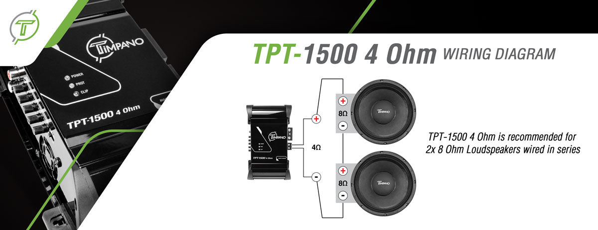 Designed to power 2x 8 Ohm loudspeakers, at the lowest cost and highest efficiency, you can easily wire two TPT-MD10 PRO or TPT-MD12 PRO into this amplifier!
